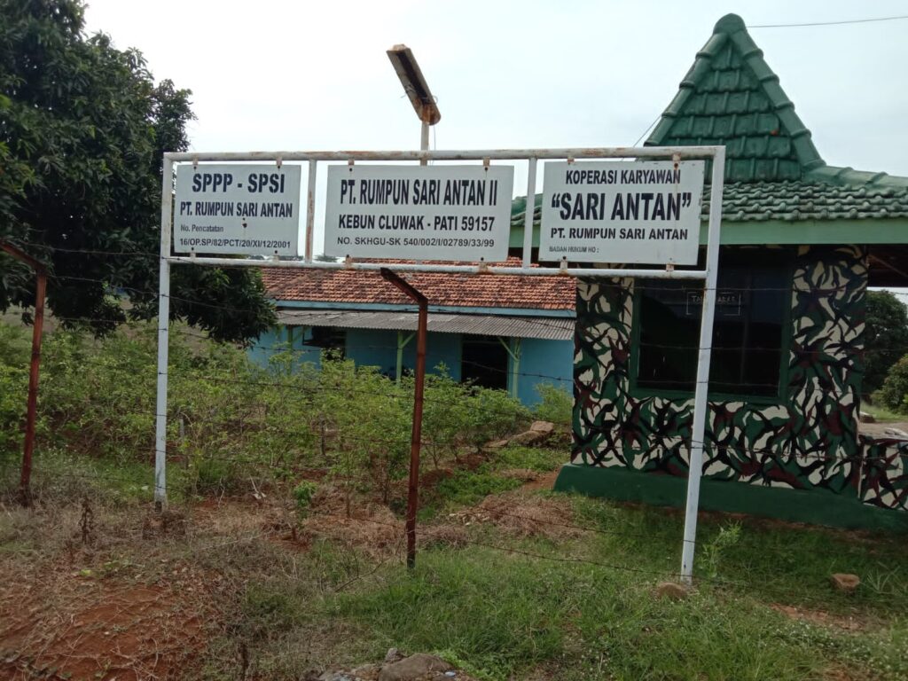 Papan identitas PT RSA dan koperasi karyawan masih terpasang di lokasi. Plang bertuliskan kepemilikan milik Kodam IV/Diponegoro ditemukan dalam kondisi dicabut