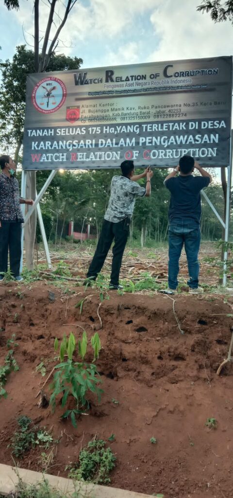 Banner besar WRC dipasang sebagai tanda pengawasan atas lahan seluas ±175 hektare di Desa Karangsari.